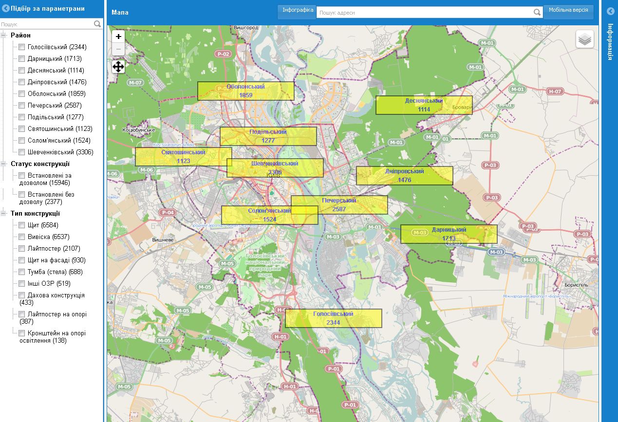 Интерактивную онлайн-карту, на которой отмечены законные и незаконные рекламные конструкции и вывески в городе, запустили специалисты КП "Киевреклама".
