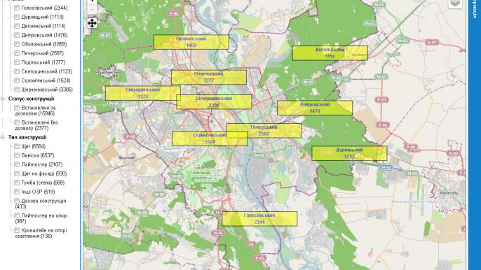 В Киеве запустили онлайн-карту, где обозначены все рекламные конструкции