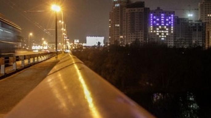 Светящийся украинский герб можно увидеть возле Московского моста, в новостройке  «Park Stone», которая расположена по пр. Героев Сталинграда, 2д, в Оболонском р-не столицы