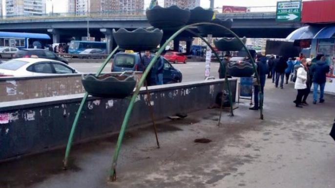 Бороться с уличными торговцами, которые раскладывают свой товар прямо под открытым небом, решили довольно эстетичным образом. Так, возле станции метро "Харьковская" установили специальные "предохранители" – арки для цветов.