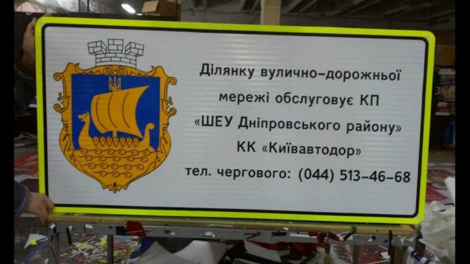 На улицах Киева появились знаки с информацией об ответственных за обслуживание участка дорог.