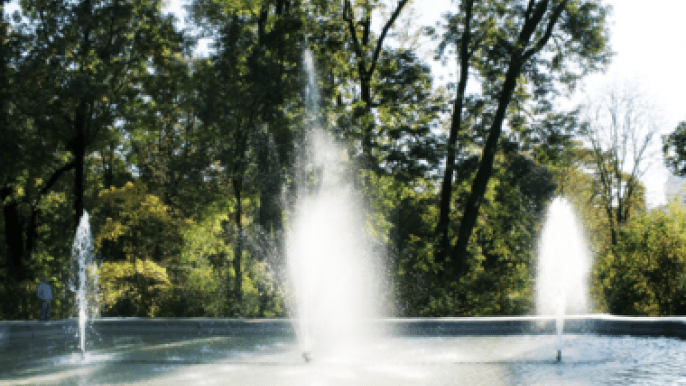 В ботаническом саду имени Фомина (ст. м. "Университет") заработал фонтан, который был закрыт последние два года. "Конструкция была в аварийном состоянии и не ремонтировалась 40 лет. Но его восстановили за деньги меценатов, и фонтан заработал.