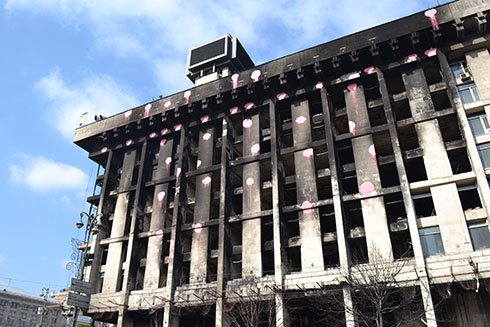Как сообщалось ранее, в ночь с 18 на 19 февраля в Доме профсоюзов произошел пожар, в результате которого обрушились перекрытия между 4-м и 5-м и между 6-м и 7-м этажами. Сжигание Дома профсоюзов стало результатом столкновений между правоохранителями и участниками массовых протестов, которые продолжаются с ноября прошлого года.