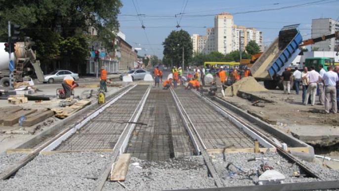 Директор Департамента транспорта и связи Харьковского горсовета Сергей Дульфан 13 августа осмотрел реконструирующиеся трамвайные пути на перекрестке пр. Гагарина и ул. Кирова.