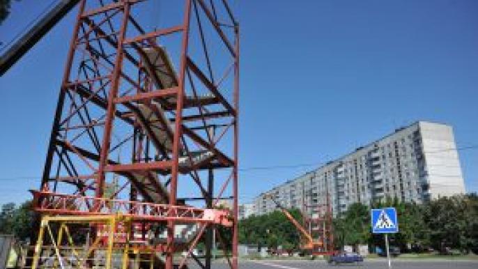 Как сообщили в ООО «Стальконструкция», переход строят уже второй месяц. По обеим сторонам дороги установлены две трехэтажные конструкции. Длина перехода составит около 70 м, ширина – 3,5 м, высота от земли до крыши – 12 м, от земли до нижнего края перехода – 8 м. Внешне сооружение будет напоминать стеклянный шар. Для удобства пешеходов там установят лифт, а зимой будут включать отопление.